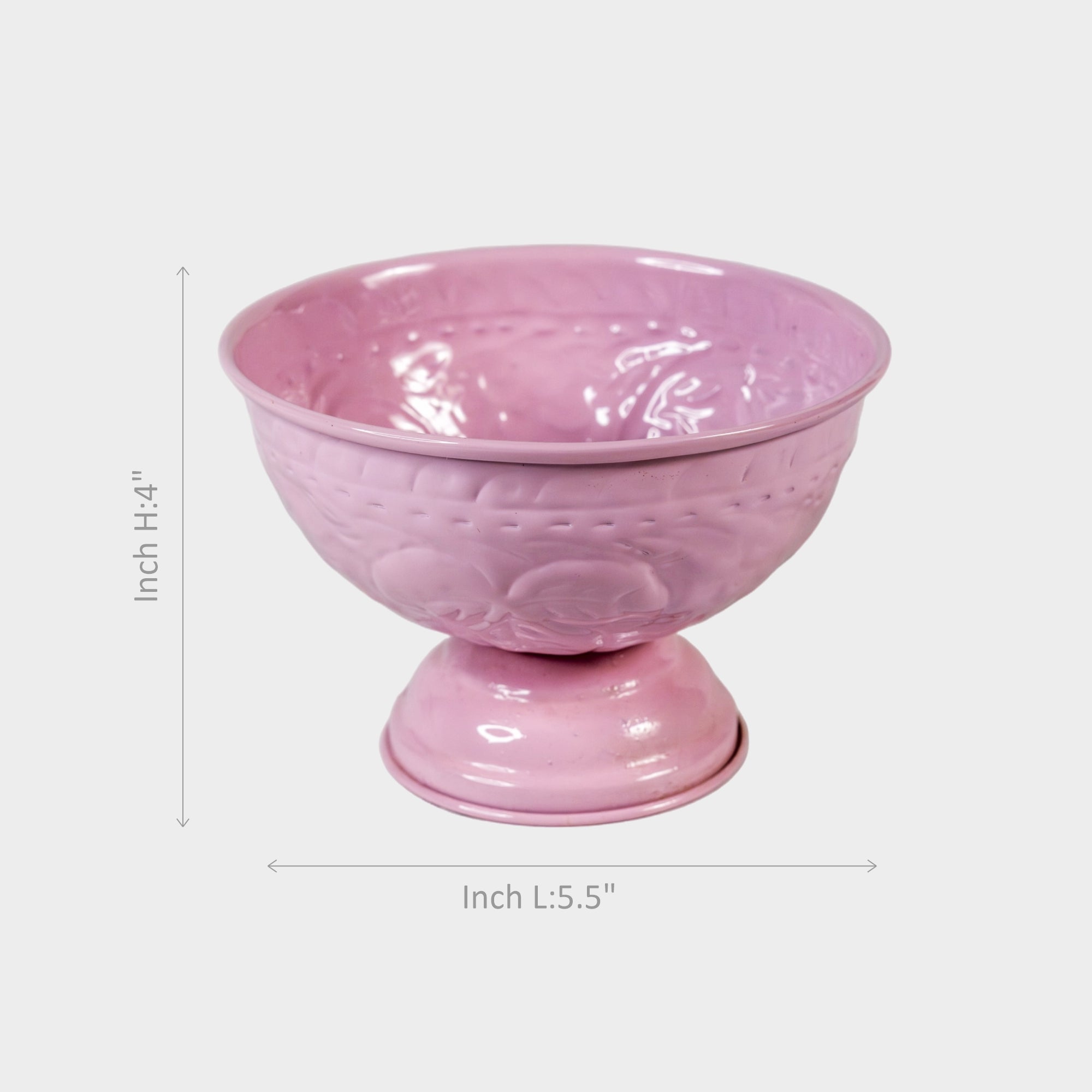 Elevate your décor with this Pink Metal Decorative Pedestal Bowl, crafted from