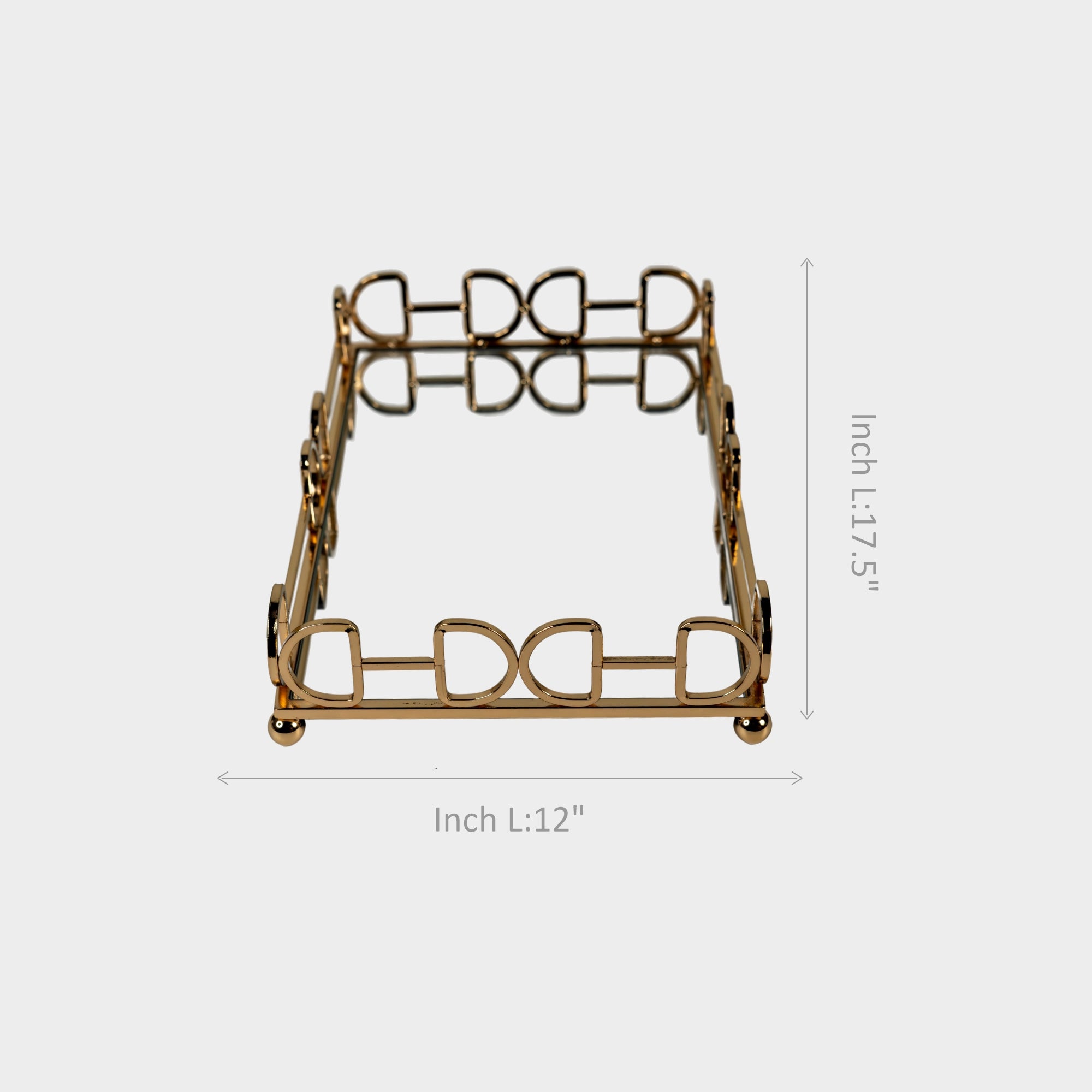 tray. Designed with a stylish loop-edge frame and a reflective mirror base, it’s perfect for