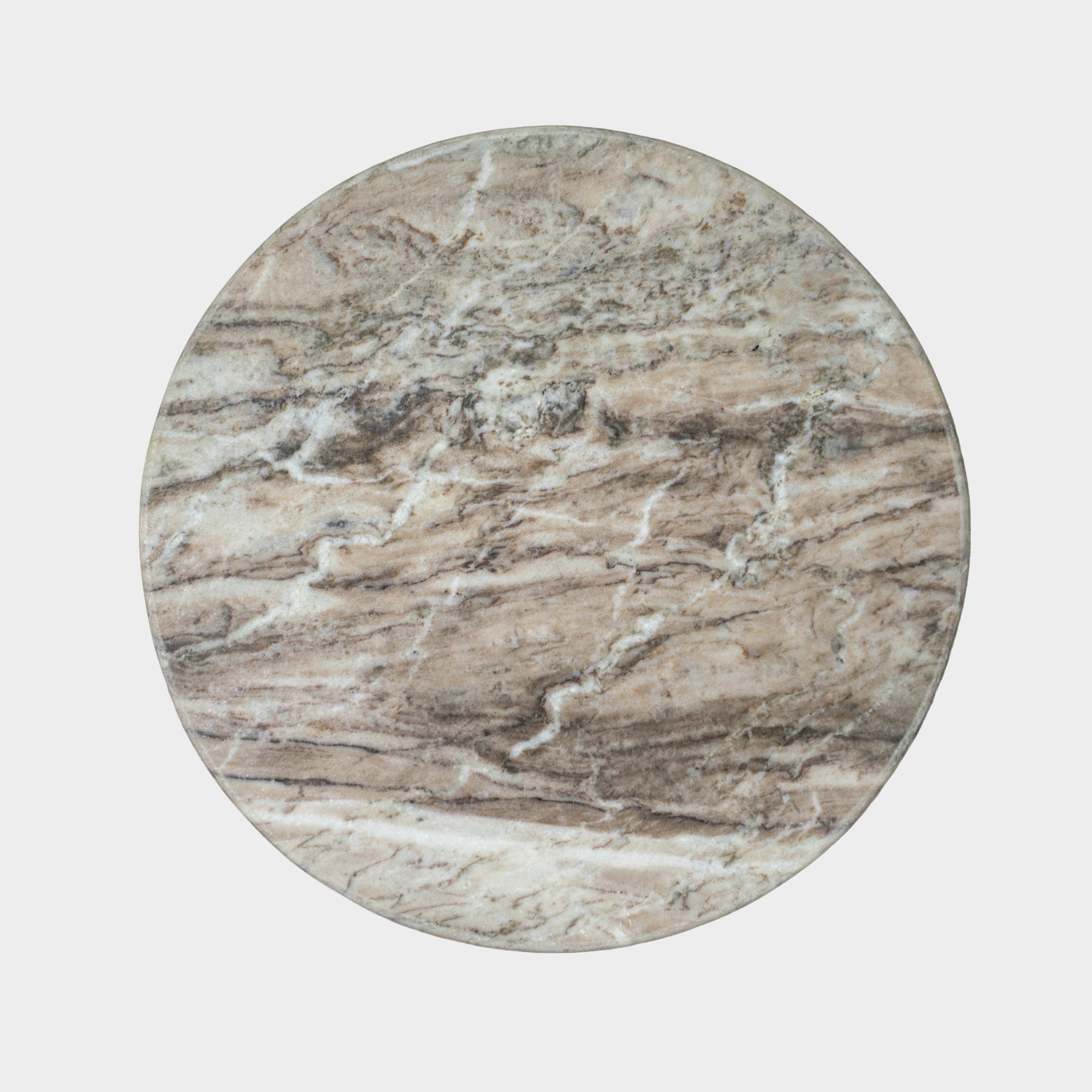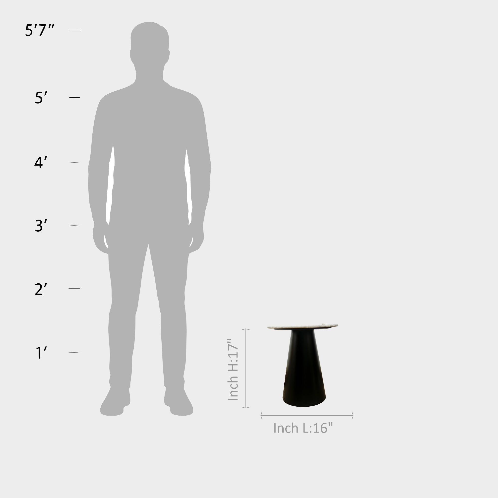 Its compact size makes it suitable for use as a side table, accent table, or end table. The neutral combination of marble and metal allows it to fit easily into modern, contemporary, and luxury interiors, whether placed beside a sofa, armchair, or bed.