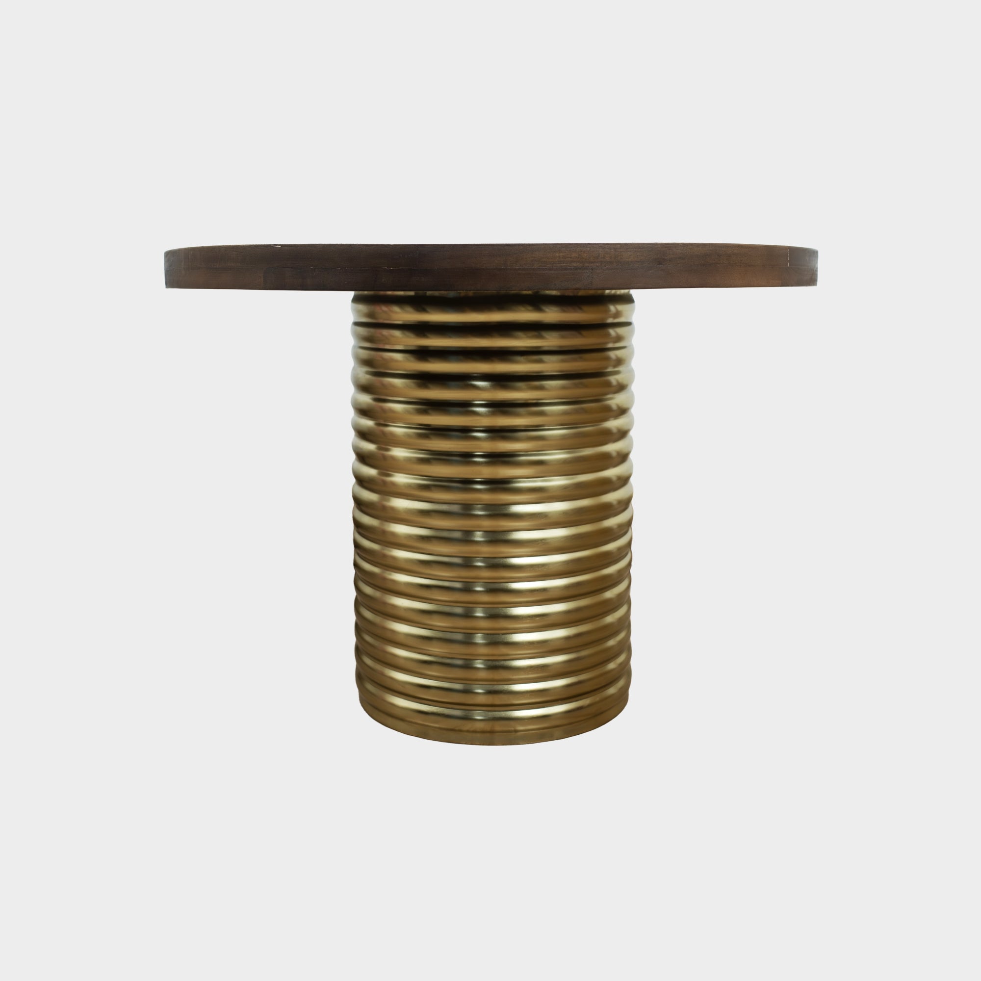 This round coffee table features a wooden frame with a glass top, supported by a solid MS (mild steel) base. The combination of wood and glass creates a balanced surface that feels refined while remaining practical for everyday use.