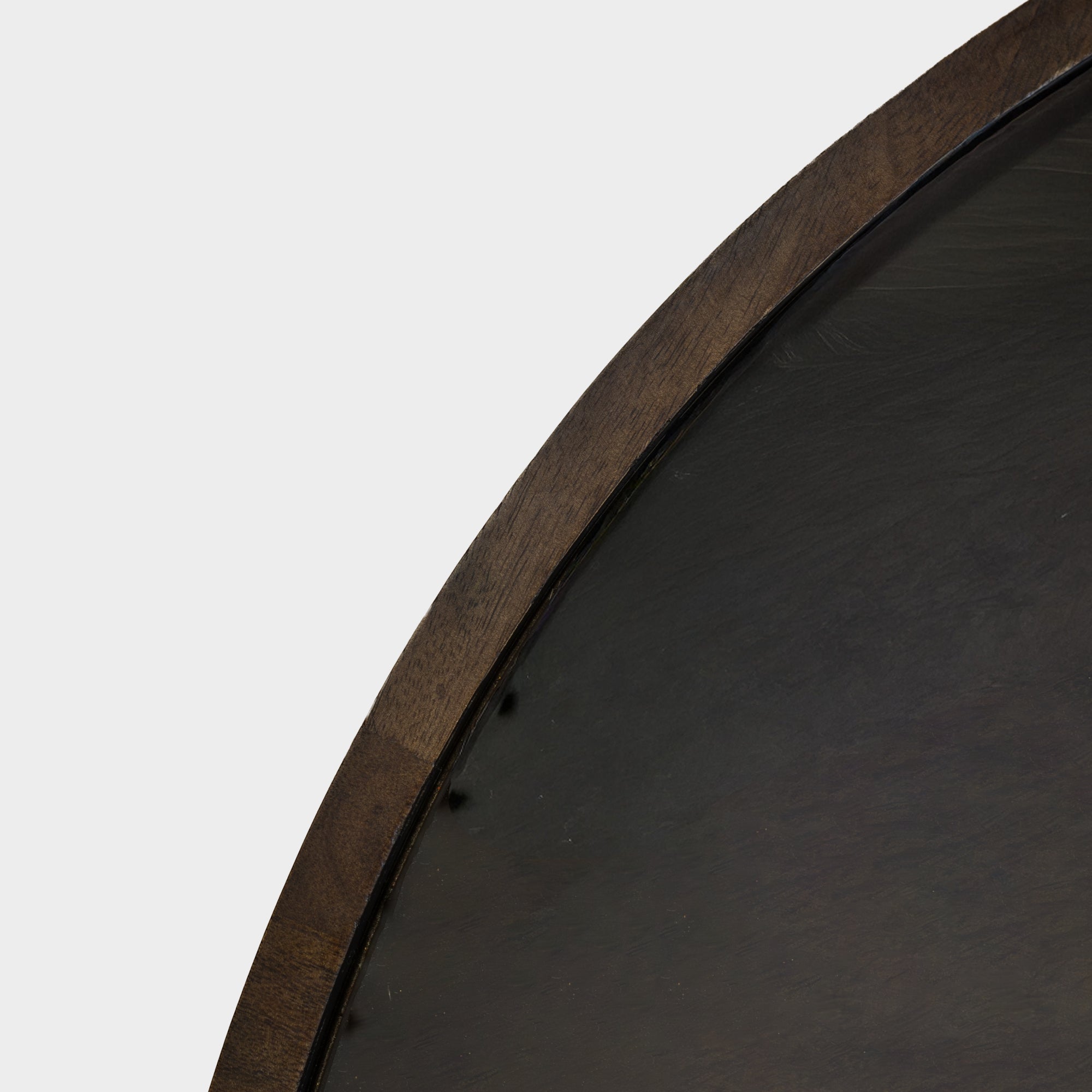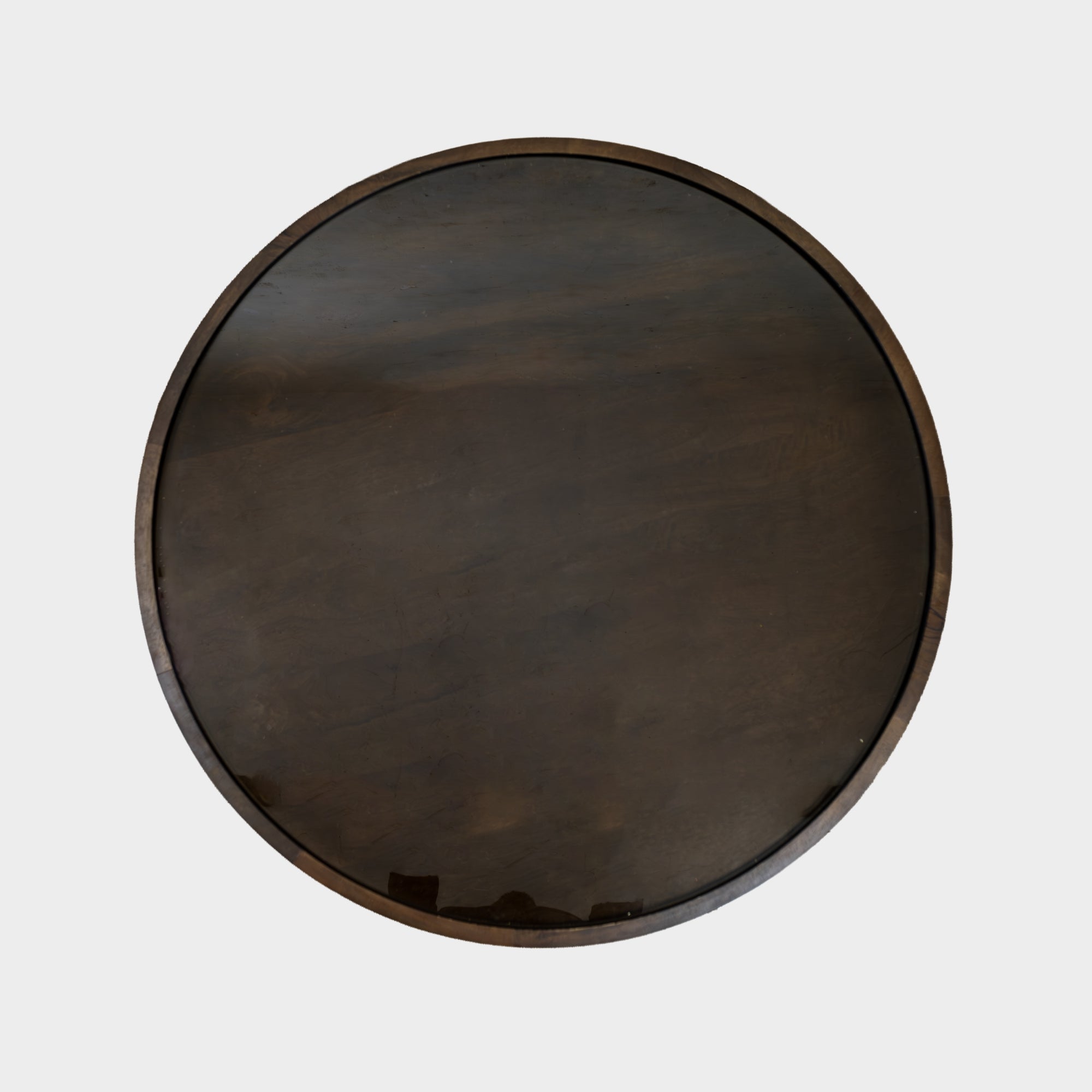 Finish: Wooden rim with clear glass top and metal base