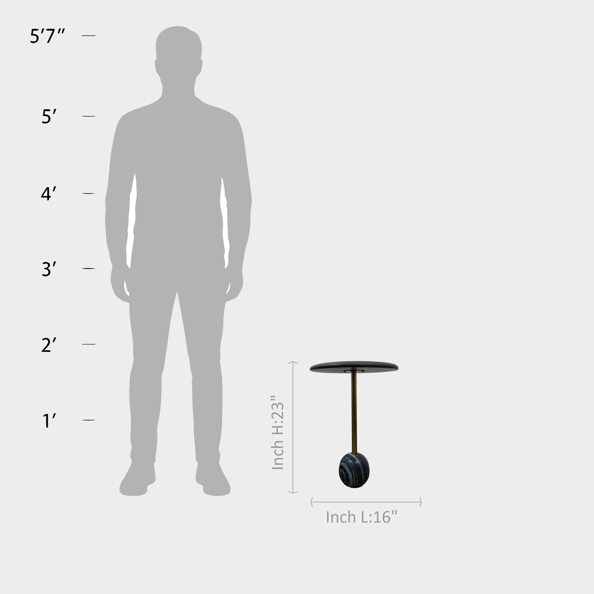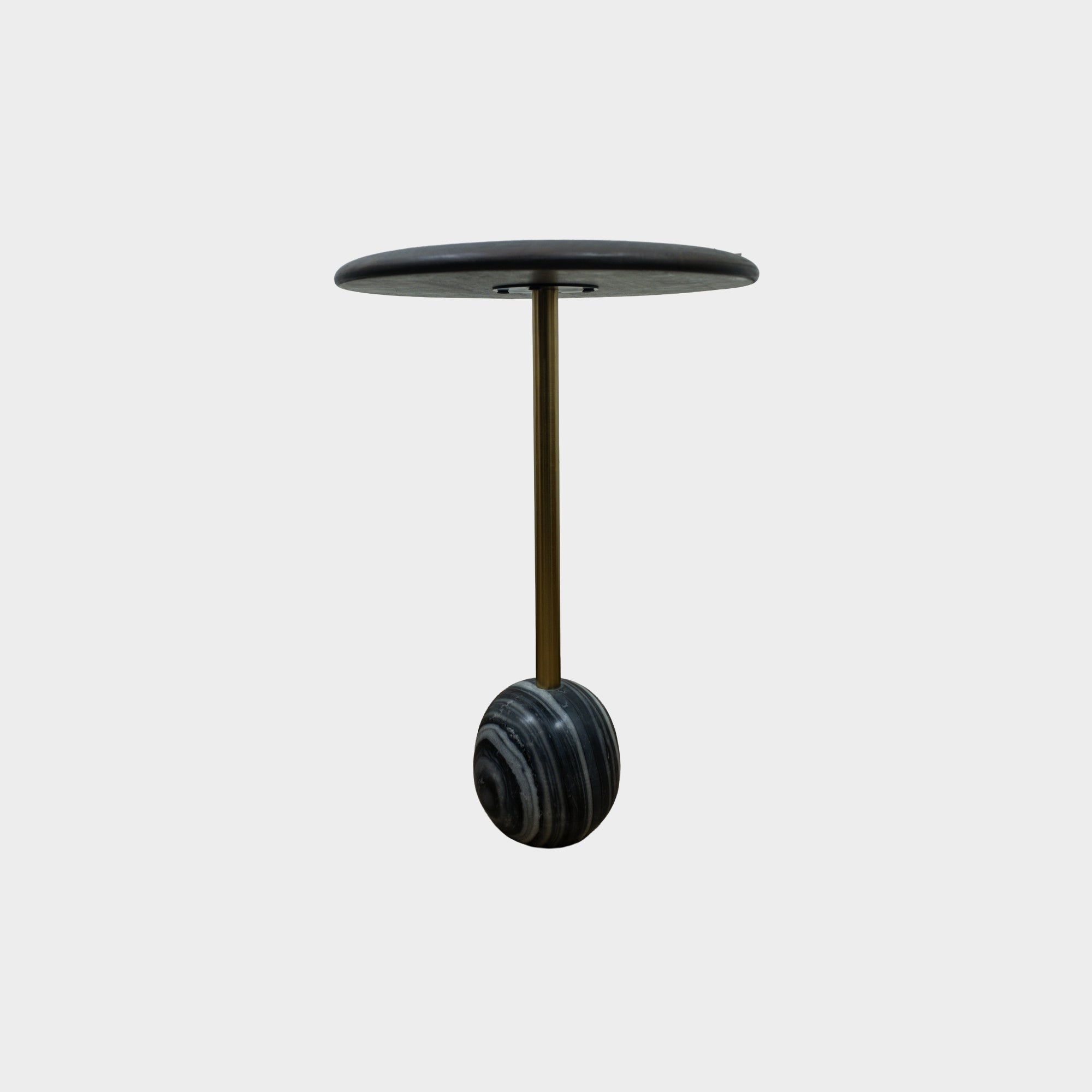 A slim metal stem connects the top to the marble base, giving the table a balanced and sculptural form. Compact and functional, it works well beside sofas, armchairs, or beds, and also fits neatly into reading corners or lounge spaces.