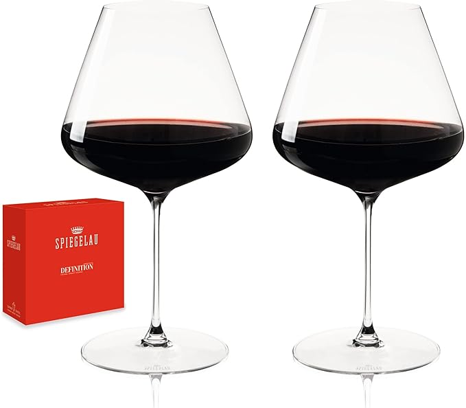 The Burgundy glass is specifically designed for light-bodied red wines with high acidity and moderate tannin. This glass effectively brings out the rich fruit-forward characteristics of the wine while also balancing its high acidity. The tulip-shaped bowl captures every intricate aroma of the wine. SPIEGELAU presents a modern line of thin machine-made glasses, using new proprietary technology.