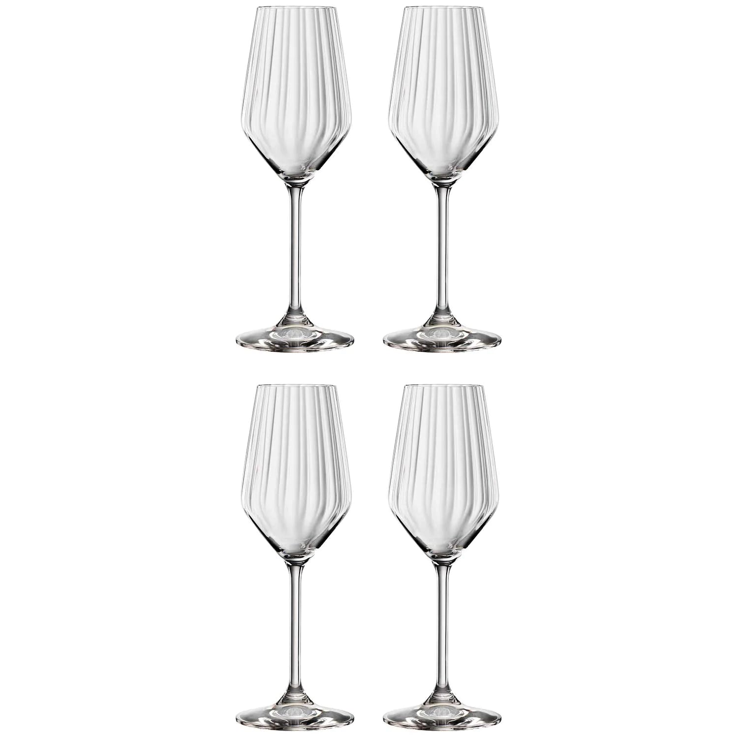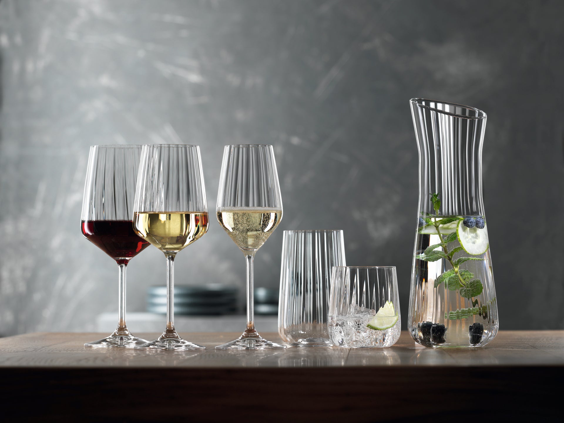 This sleek Champagne set is ideal for all kinds of light, dry champagnes. With its refined shape, it helps emphasize the wine's natural fruitiness while reining in its acidity and unleashing its delicious red berry and pinewood aromas. Its also great for enjoying tart, dry rosés. The diamond design provides ample space for complex aromas to unfold, while the wider bowl lets them build and intensify—much better than a dauntingly narrow flute. As an added bonus, each glass showcases a sparkling point to help create an impressive array of bubbles. Whether you're throwing a swanky soiree or just having an intimate evening, SPIEGELAU's LifeStyle glasses will instantly add classy vibes to your table setting with their modern diamond shape and dazzling optical effects. Plus, they're totally dishwasher-safe.